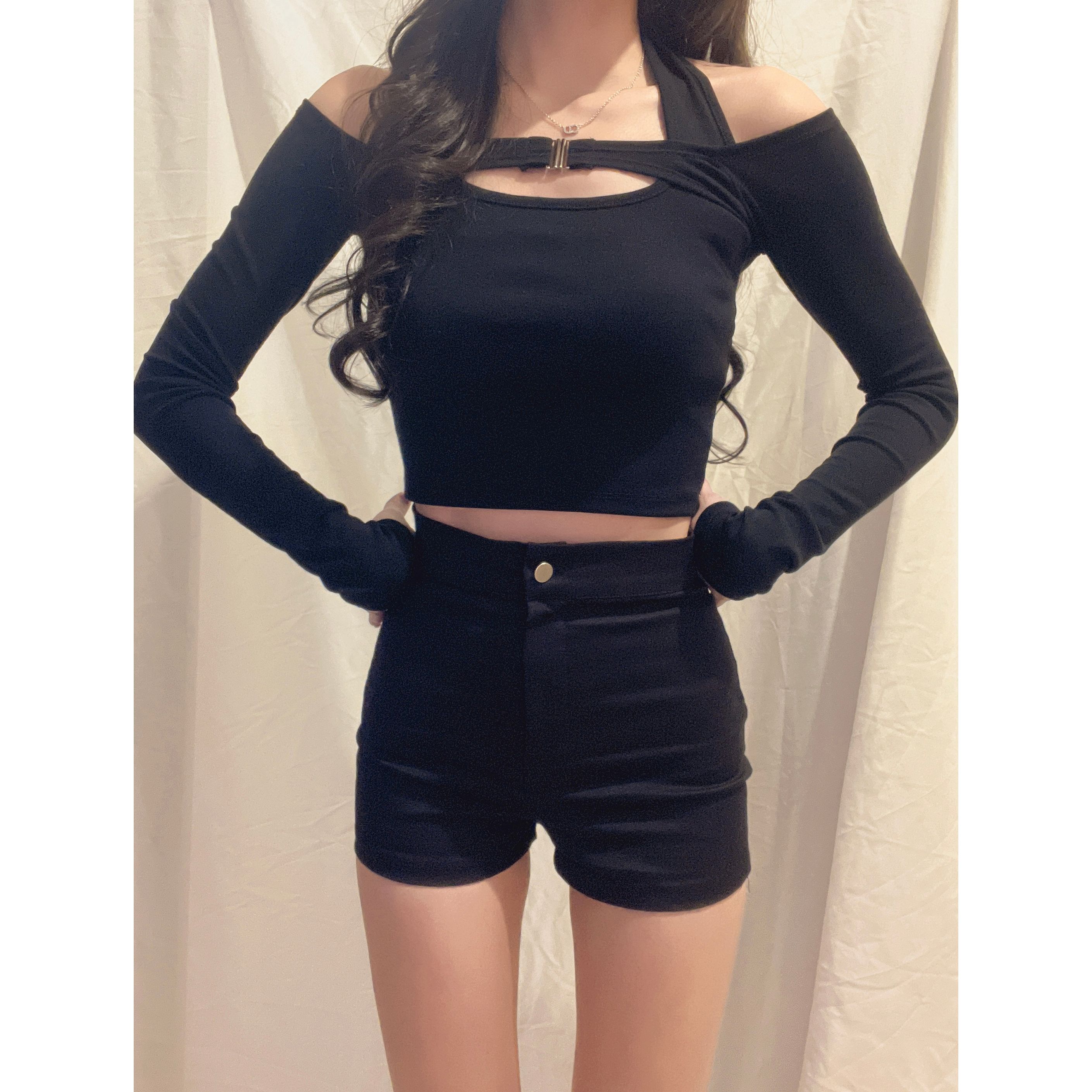 《ON THE NECK SEXY TOP》 露膊+修身短身+胸前扣 很性感又不暴露❤️🔥 掛頸設計的假兩件 設計感滿分✨ 搭高腰下身露得恰到好處🔥