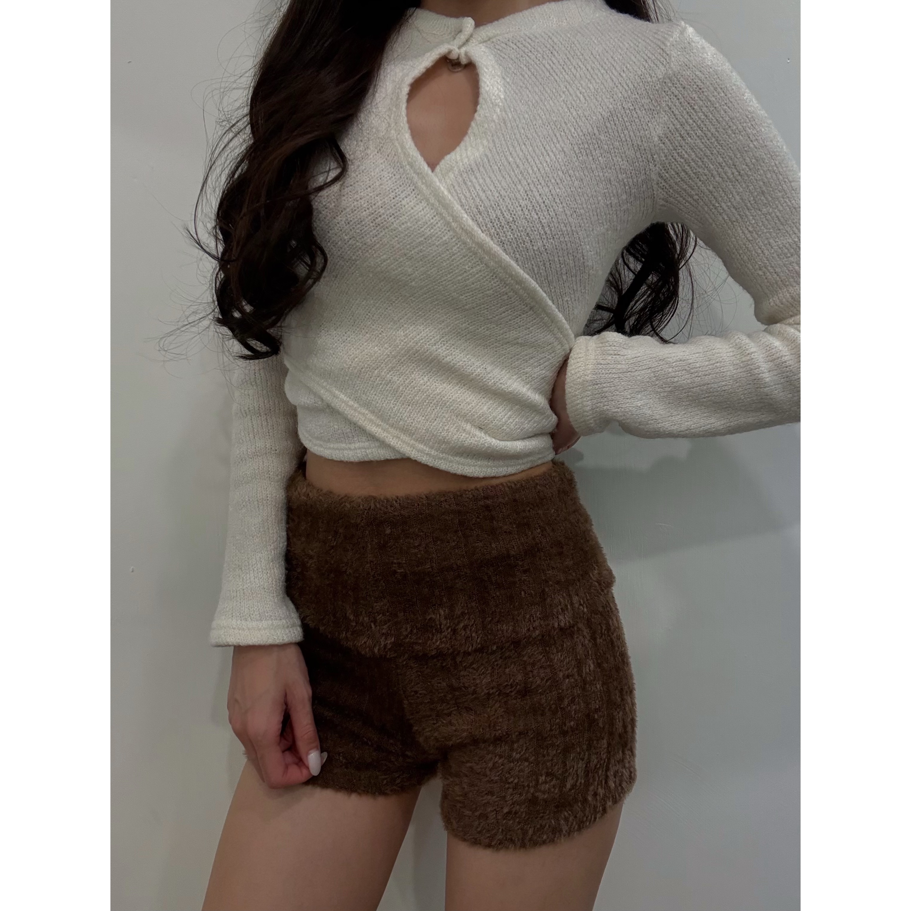 《FLUFFY SHORTS》 2601C 反摺褲頭可調 高腰 中腰 低腰 都可以 馬海毛自帶高級感 蓬鬆感 慵懶感 不厚重但保暖不錯 細軟毛絨很親膚 #購買前請先看尺寸表 📏FREE SIZE 腰圍(單面) 平舖 31CM-48CM 臀圍(單面) 平舖 36CM-59CM 長度 34CM-44.5CM 26JAN PICK🩵 🇰🇷限時優惠價$179 ↗️ 01.02(FRI) - 01.10(SAT) MODEL (尺寸僅供參考 ) 身高164CM 尺寸S 肩寬38CM 腰圍24吋 臀圍35吋