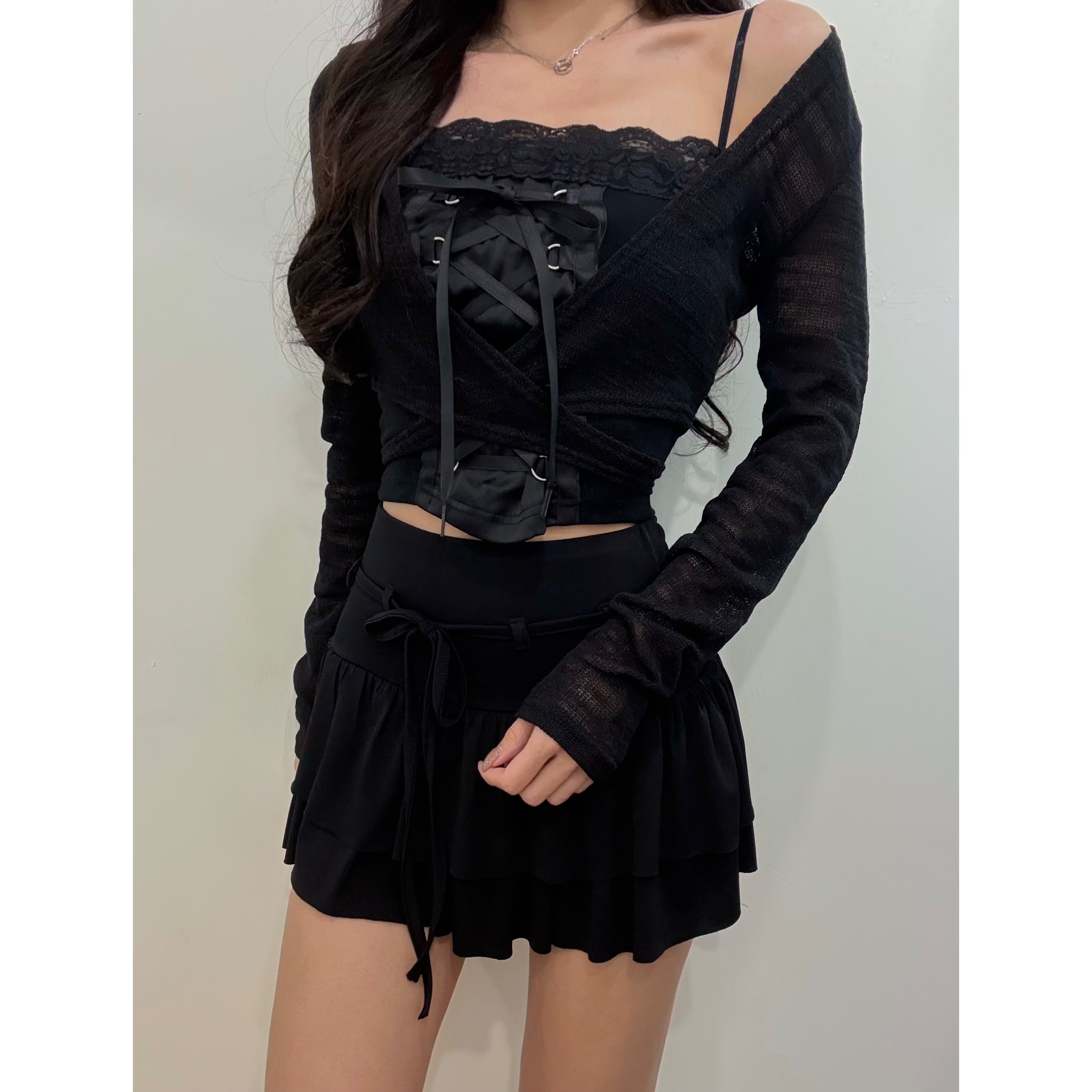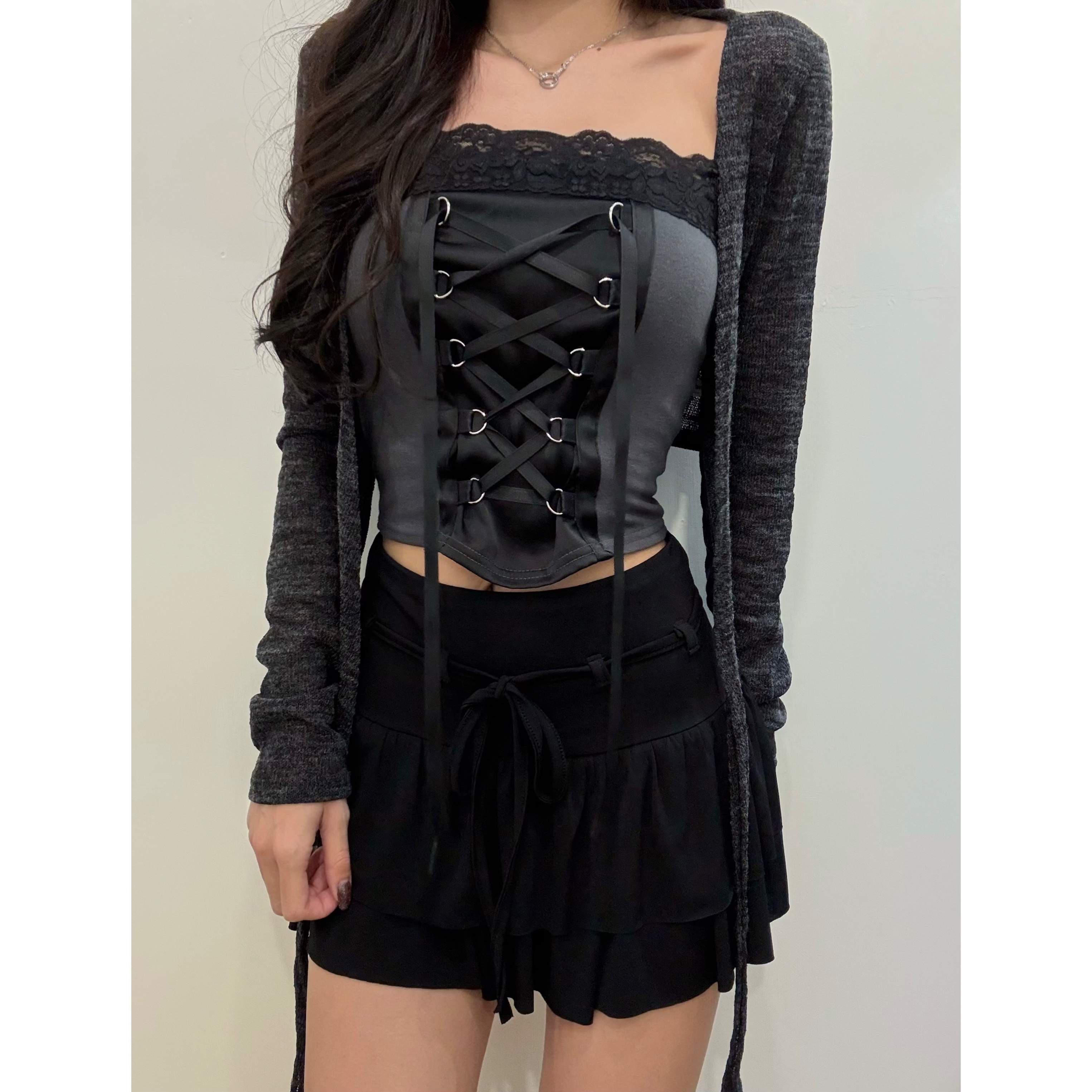 《DARK BALLET VEST》 2511H 胸前綁帶可調鬆緊度 巨顯身材❤️🔥 平口不會太低胸 肩帶可調長度 LACE領若隱若現又性感😍 #購買前請先看尺寸表 📏FREE SIZE 胸圍(單面)平舖30CM-46CM 腰圍(單面)平舖27CM-45CM 長度39CM MM NOV PICK🩶 🇰🇷限時優惠價$218 ↗️ 11.08(SAT) - 11.14(FRI) MODEL (尺寸僅供參考 ) 身高164CM 尺寸 肩寬38CM 腰圍24吋 臀圍35吋