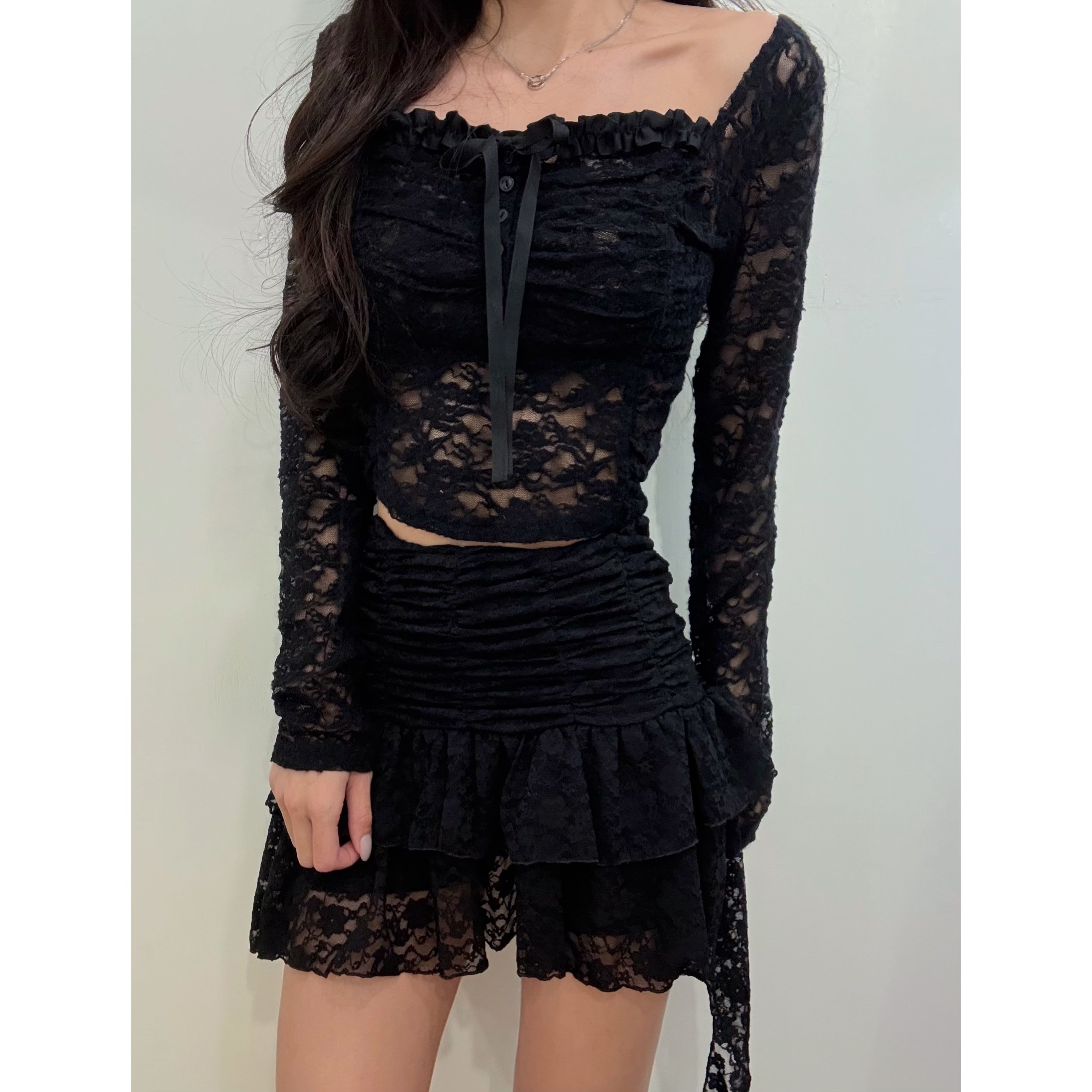 《BOW LACE CROP》 2511R FULL LACE若隱若現性感誘人❤️🔥 入膊OK! 一字膊OK! \ 外層帶點絨絨的 重工很有誠意 很多細節位 / 領口修邊打褶 呈現微心形領口 增添造型感 很好看 ! 配上綁帶小蝴蝶🎀優雅氣質UP ! 真鈕微微的抓胸位 更顯身材🤤 ✨單穿好看 ✨搭外套比想像中更出色 #購買前請先看尺寸表 📏FREE SIZE 胸圍(單面)平舖33CM-49CM 腰圍(單面)平舖31CM-46CM 長度42CM MM NOV2 PICK🩶 🇰🇷限時優惠價$228 ↗️ 11.20(THU) - 11.28(FRI) MODEL (尺寸僅供參考 ) 身高164CM 尺寸S 肩寬38CM 腰圍24吋 臀圍35吋