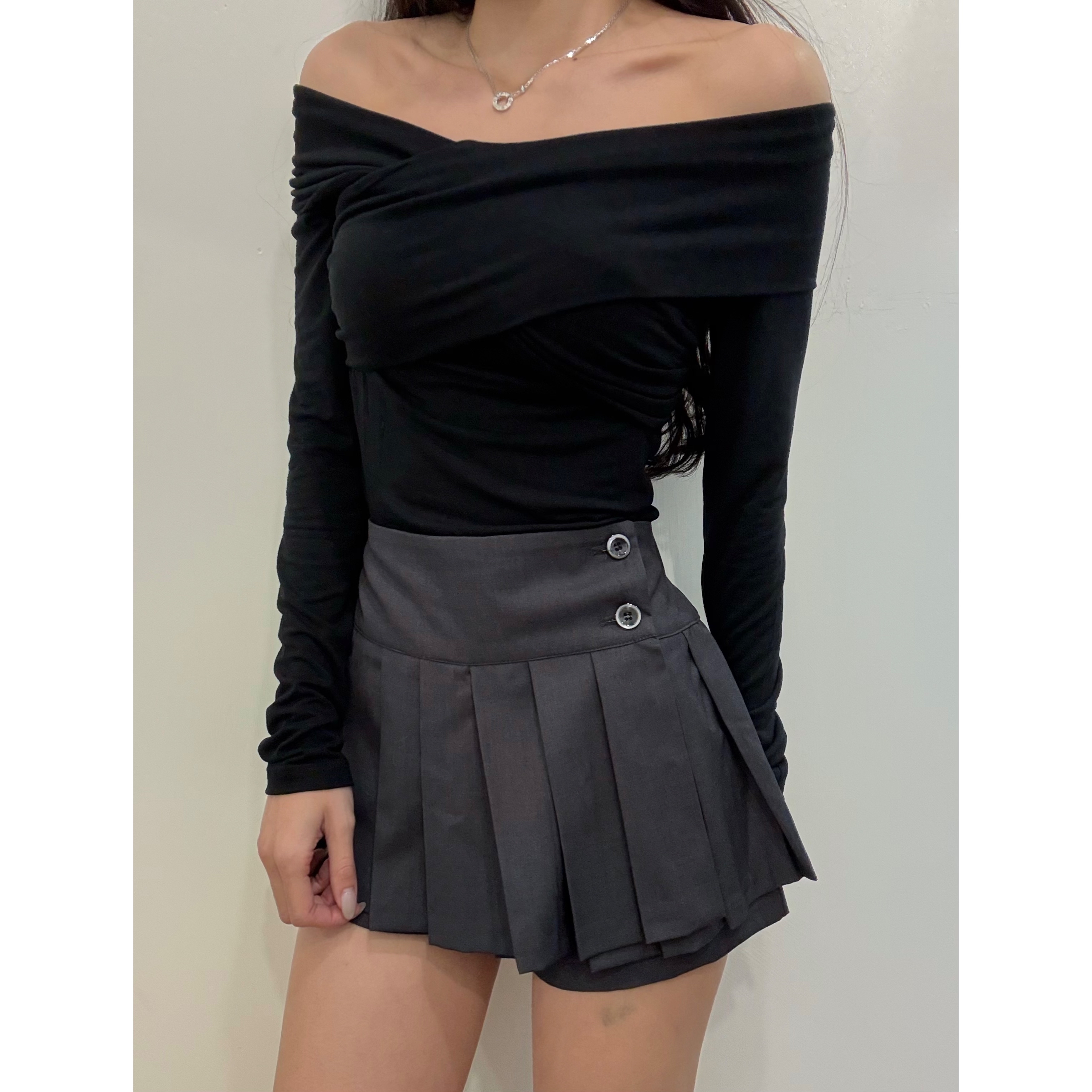 《2BUTTON PLEATED SKPT》 2512C \ 前裙 後裙 裏面褲 / 百褶裙褲可修飾腿部線條🦵🏻 微ACUT可修飾大腿屁股線條 不誇張的幅度不會鋼起來 側雙鈕🔘小點綴不單調 #購買前請先看尺寸表 📏FREE SIZE 腰圍(單面) 平舖33CM-42CM 臀圍(單面) 平舖46CM-53CM 長度34CM MM DEC PICK❄️ 🇰🇷限時優惠價$259 ↗️ 12.05(FRI) - 12.09(TUE) MODEL (尺寸僅供參考 ) 身高164CM 尺寸S 肩寬38CM 腰圍24吋 臀圍35吋